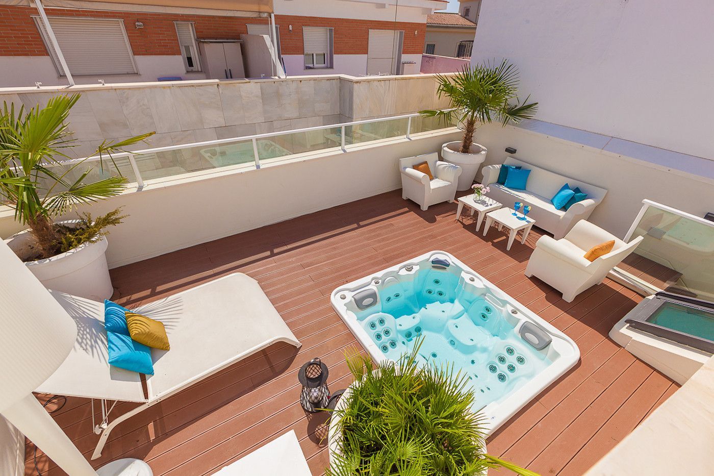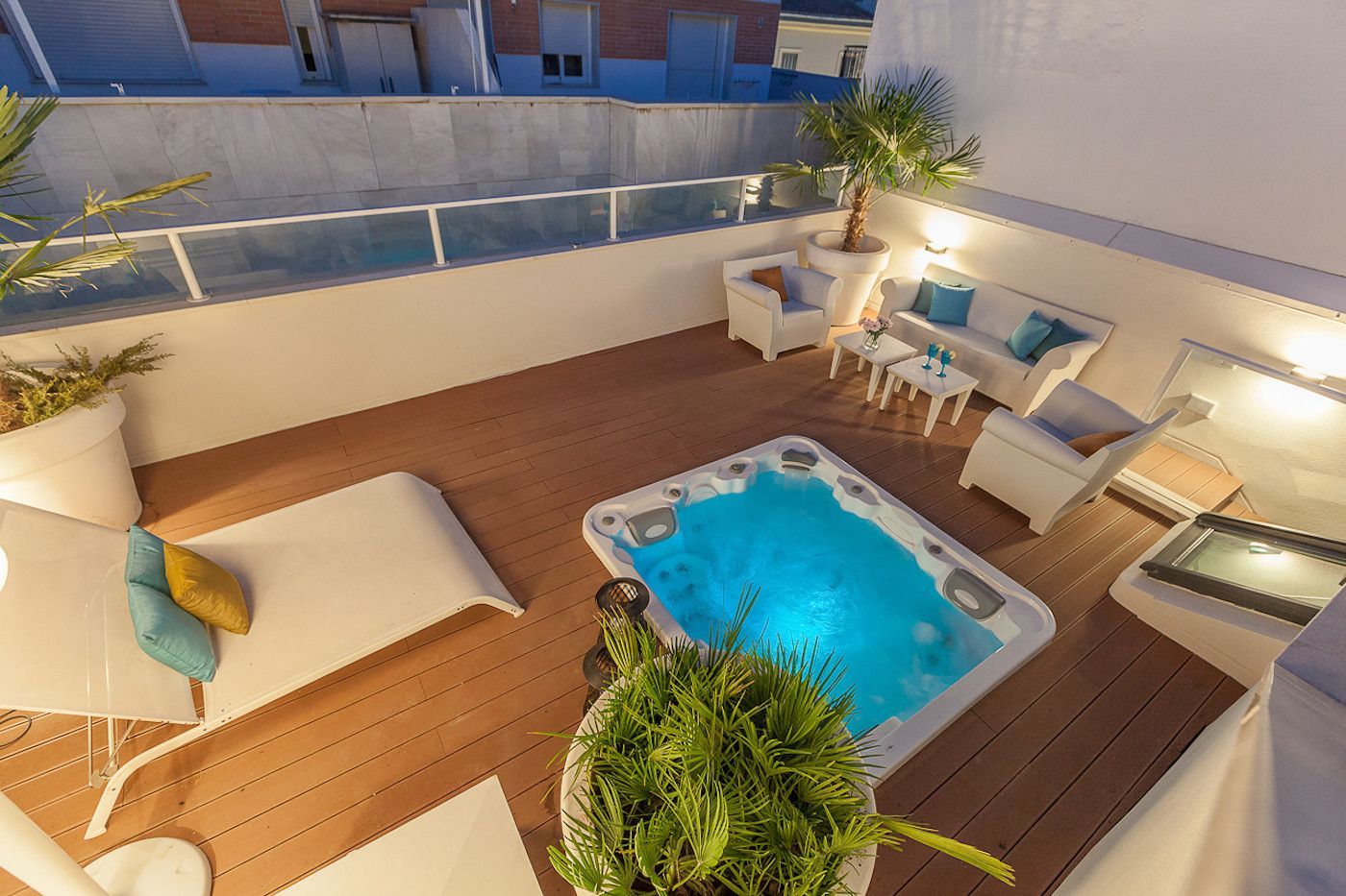 La cubierta del edificio se reconfigura para permitir la creación de espacios de ocio de cada apartamento con jacuzzi de uso individual, con acceso a vistas sobre todo el casco histórico de la ciudad.