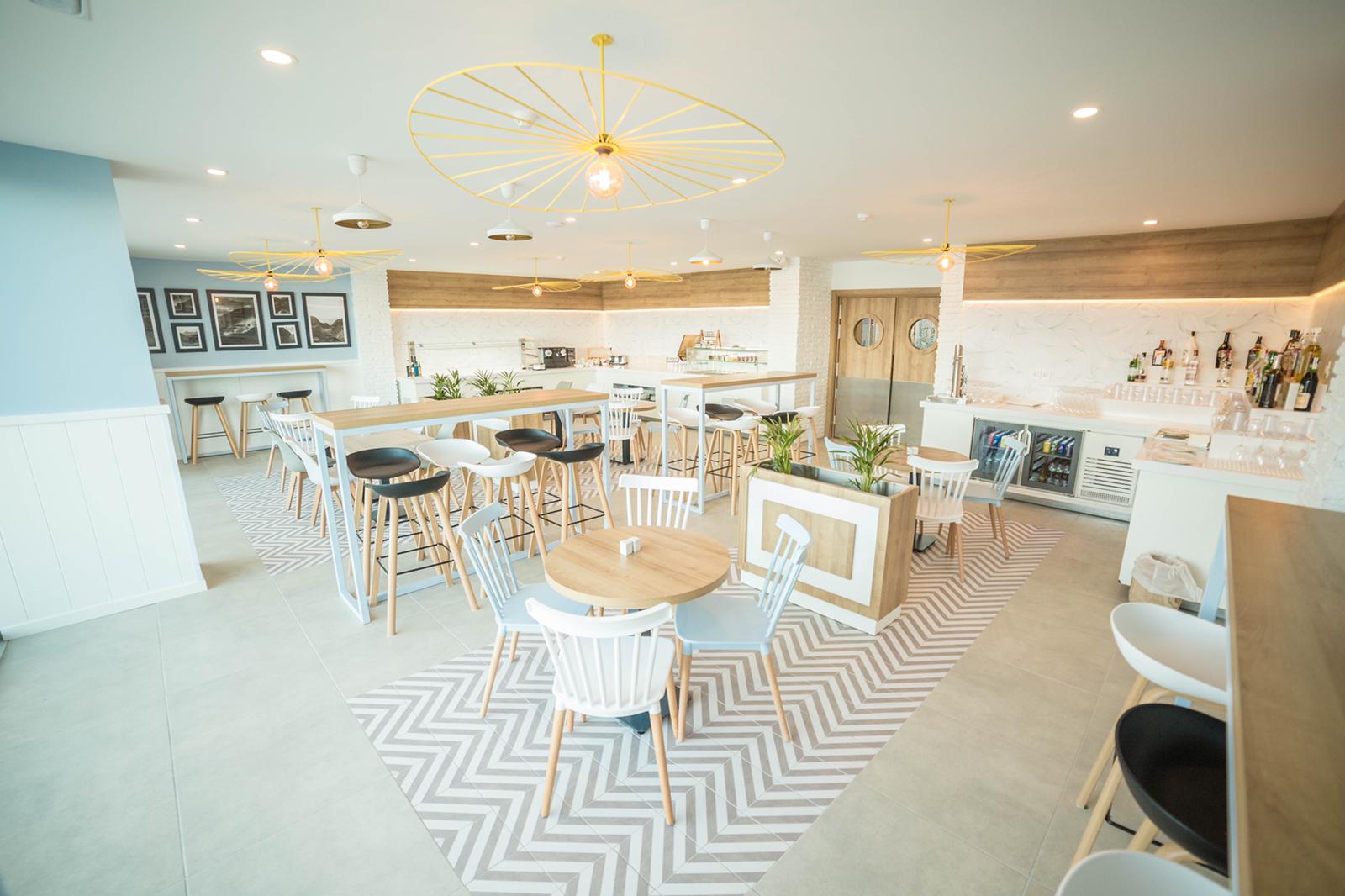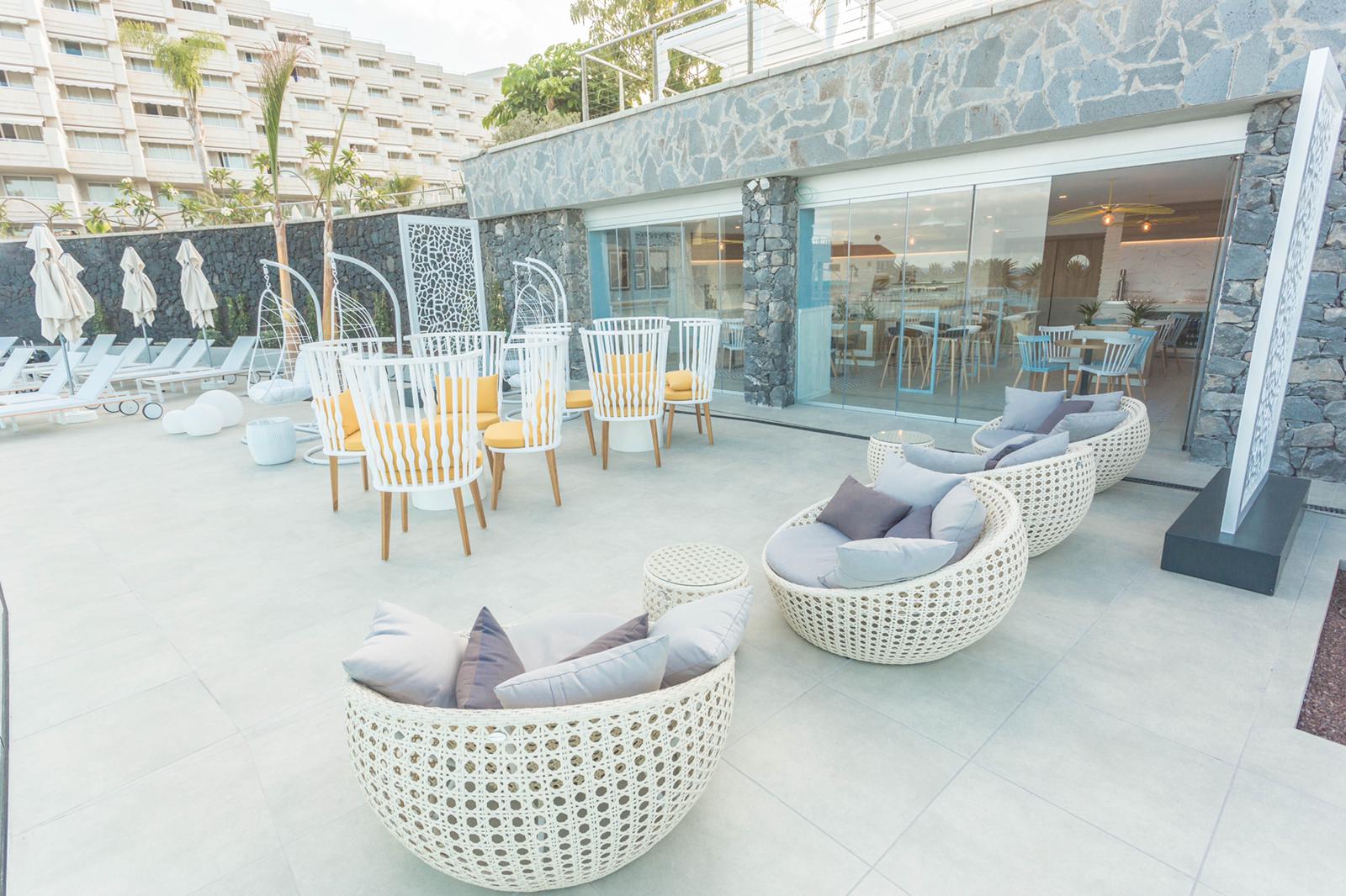 La actuación ha consistido en generar un nuevo espacio destinado al disfrute de los clientes en una zona que sólo servía de paso y sin aprovechamiento. Se ha ejecutado una piscina y la urbanización correspondiente a la misma que está conformada por las playas para tumbonas, la adecuación de las zonas de circulación a la nueva geometría, así como la mejora de un núcleo de aseos existente, el acondicionamiento de un almacén, la creación de una zona de barra self service para los usuarios de la piscina y finalmente, la ejecución de un recinto para alojar las instalaciones hidráulicas y depuración.