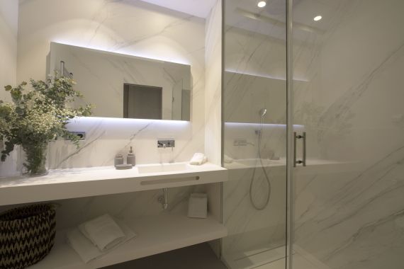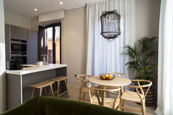 El alto nivel de protección del edificio condiciona enormemente la distribución superior que se configura en torno a un patio central de luces y una cubierta superior para el uso y disfrute de los apartamentos.